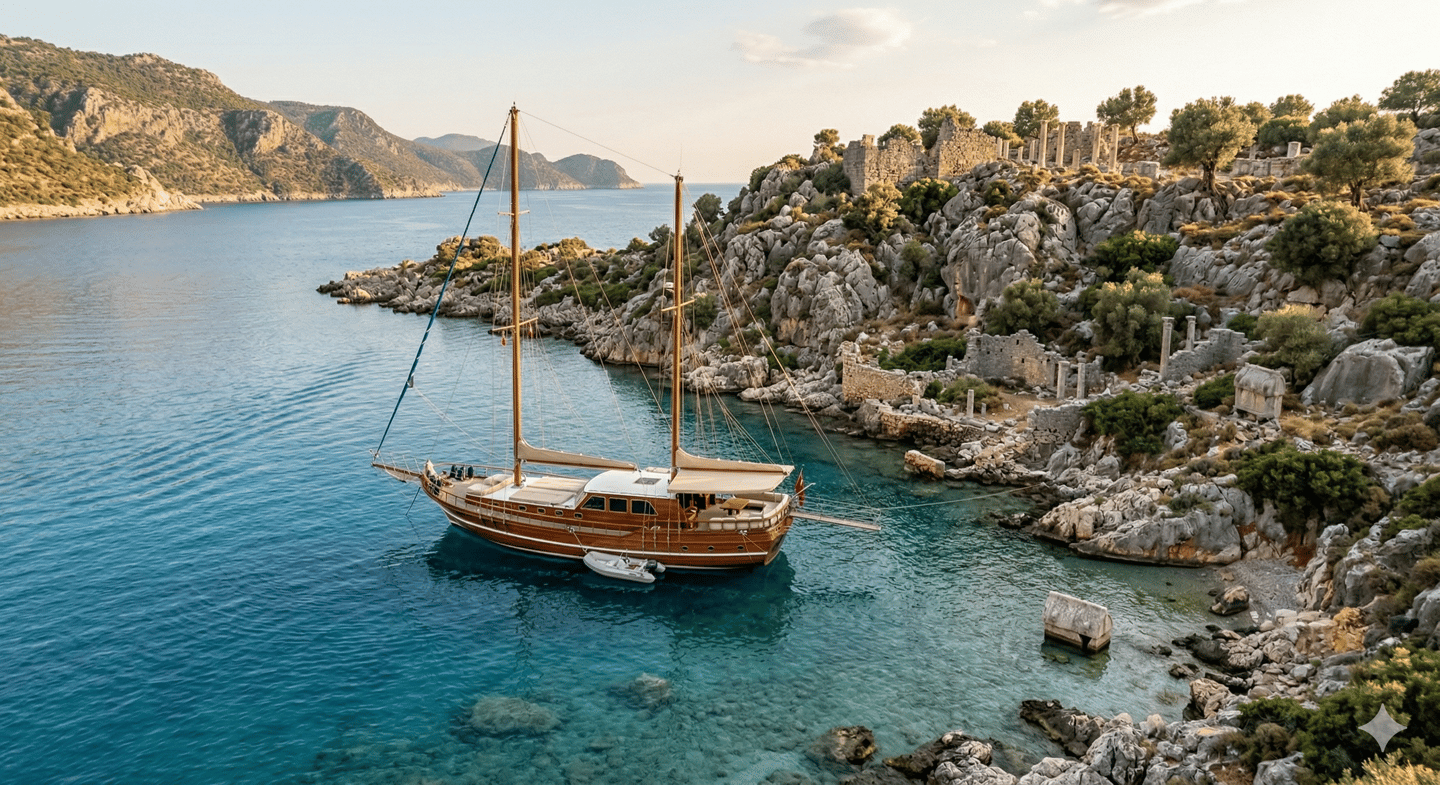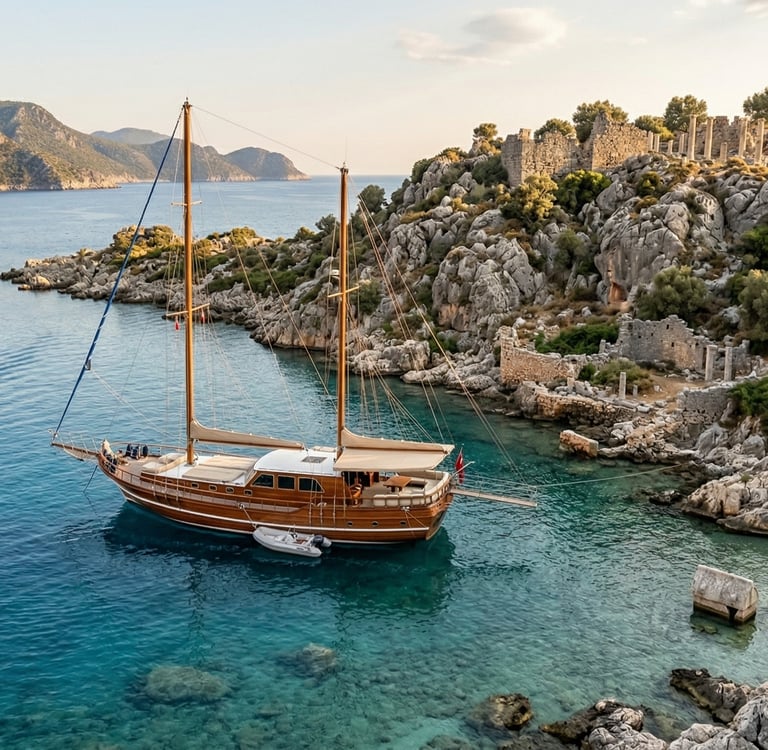 I invite you to chart a course through the most secluded coves of the Turquoise Coast on a traditional wooden Gullet. A private or shared - sailing experience focused on untouched nature, hidden ruins accessible only by sea, and the rhythm of the waves.