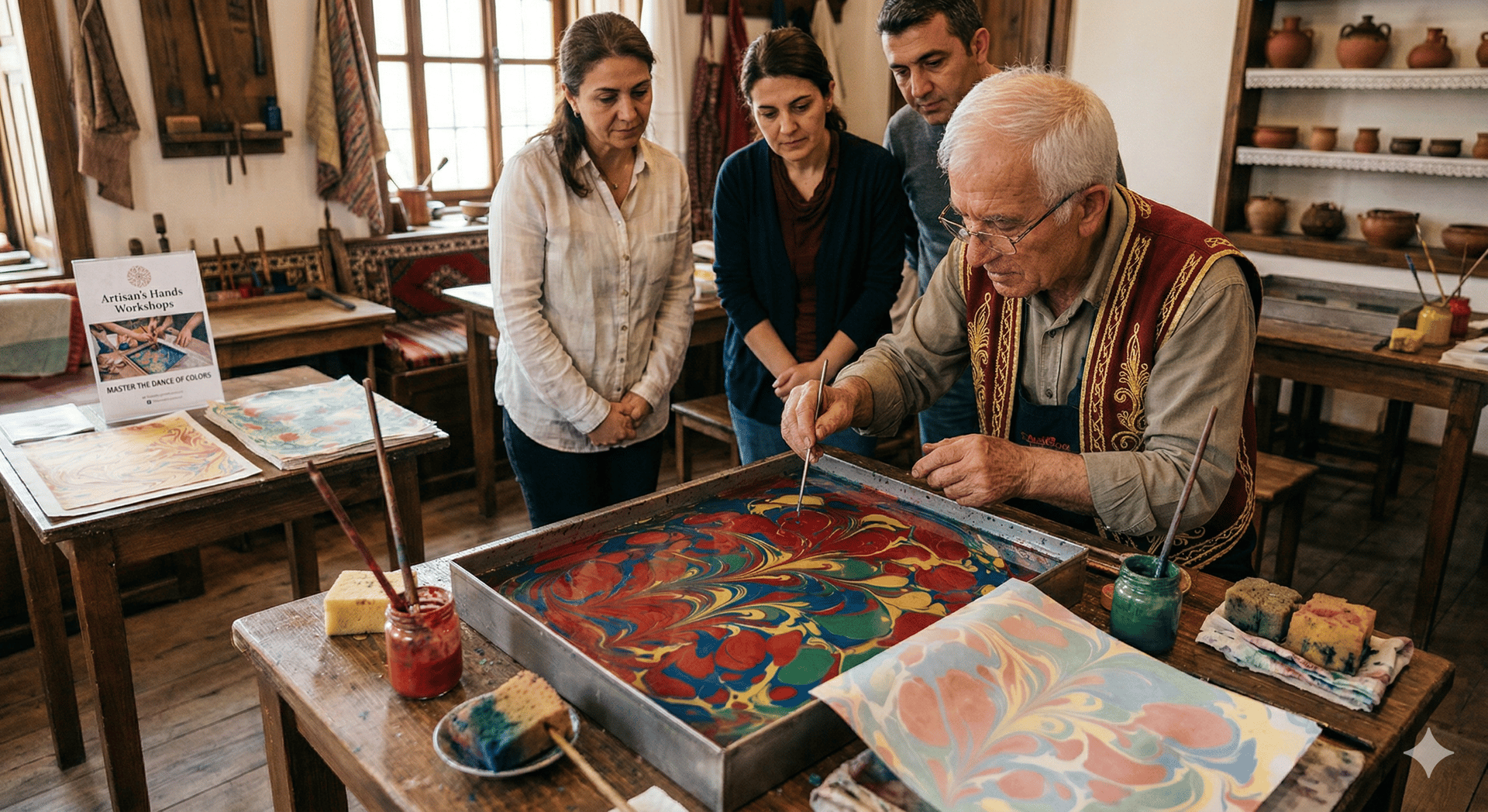 Whether you are mastering the dance of colors on water in a private Ebru (Paper Marbling) session, or joining a local chef to uncover the delicate alchemy of regional cuisine in a farm-to-table cooking workshop, you become part of the narrative.