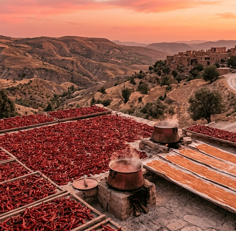 Journey can lead you to the vibrant courtyards of village homes, where we participate in the art of preservation. We join the locals in drying crimson peppers under the Mediterranean sun, preparing traditional Tarhana—the world’s oldest instant soup—and simmering copper vats of grape molasses. This is a tactile connection to the earth’s timeless wisdom, one harvest at a time.